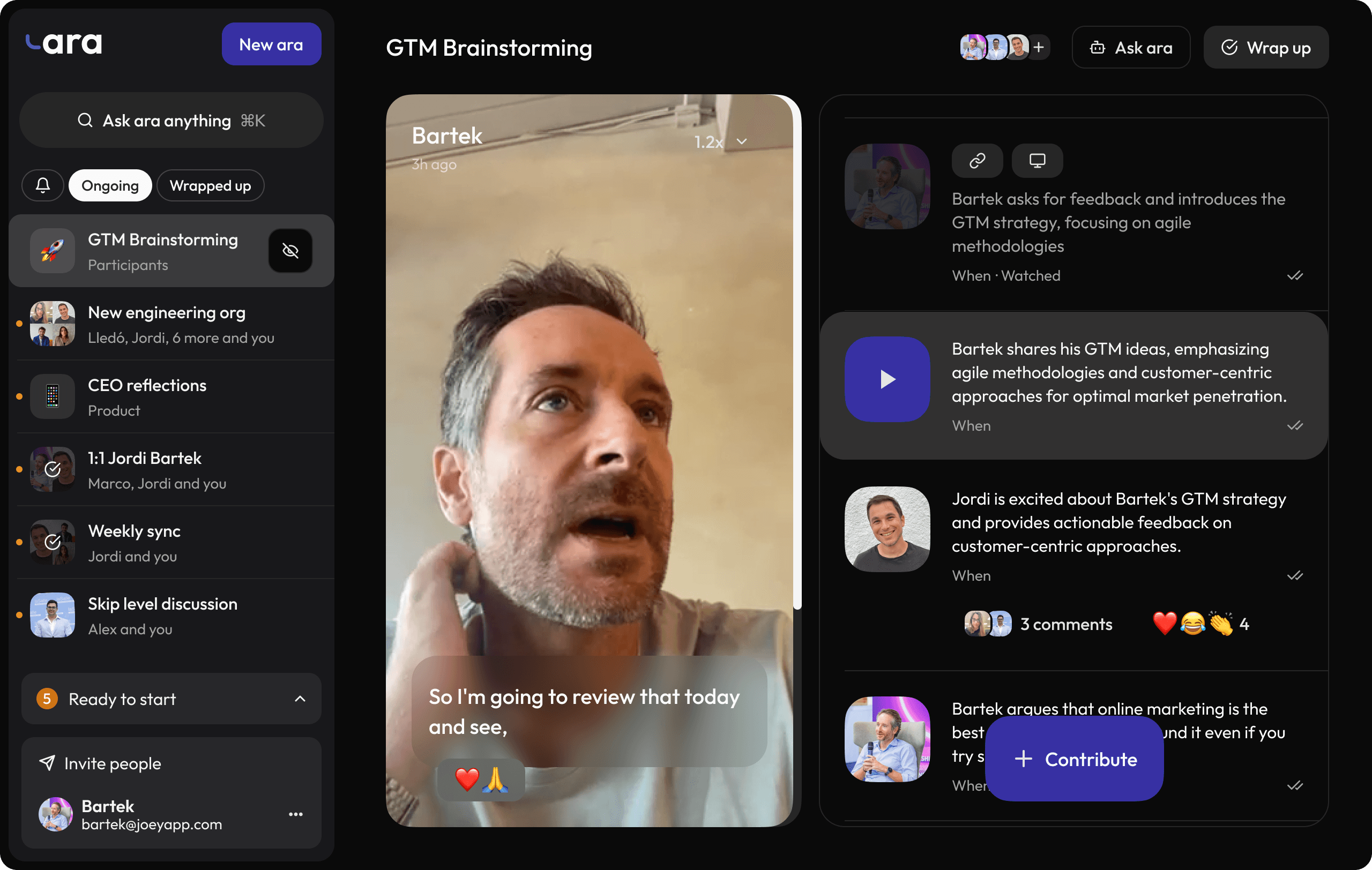 No wasted time scheduling, no time waiting for a meeting to start, consume meeting content in double speed and use real-time AI summaries to engage more efficiently